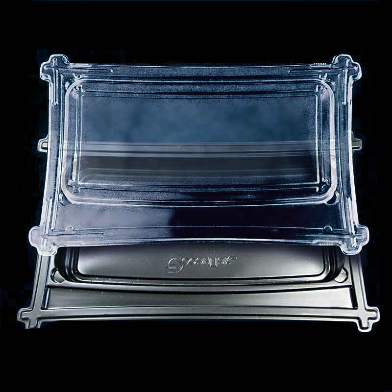 Caserola din PET/PS ,cu baza neagra si capac transparent.