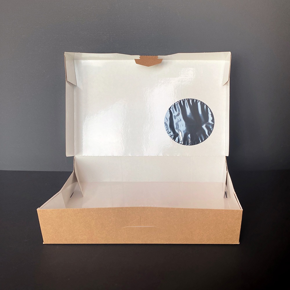 Ambalaj biodegradabil de unica folosinta din carton, pentru gogosi, prajituri sau alte deserturi.