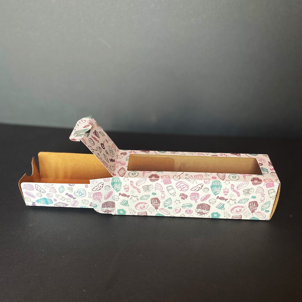 Cutie pentru prajituri/desert biodegradabilă din carton laminat, decorata cu motive din bucatarie. Poate fi utilizata pentru mancare umeda.