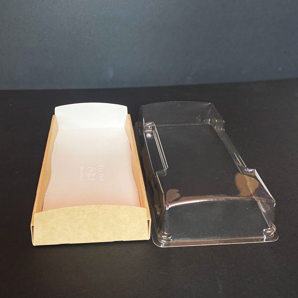 Ambalaj biodegradabil de unica folosinta din carton, cu capac transparent, pentru prajituri sau alte produse de cofetarie.