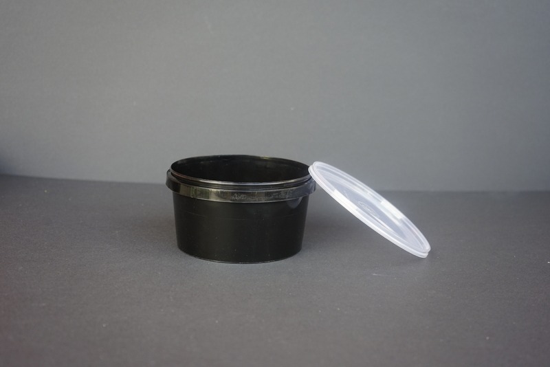 Bol pentru supa , negru, cu capac transparent.