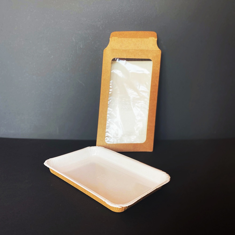 Platou biodegradabil de unica folosinta, din carton, cu invelis transparent.