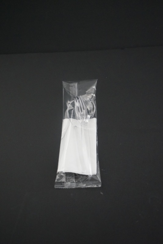 Set LFC transparente (lingura, furculita, cutit, servetel) - LFCT