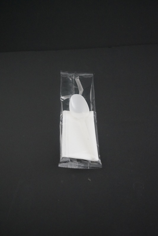 Set Lingura alba (lingura + servetel). Lingura de unica folosinta si servetelul sunt ambalate individual.
