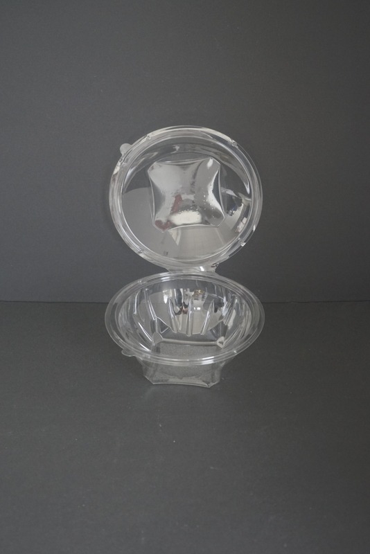 Caserola din PET,transparenta,cu capac atasat,recomandata pentru salata. Caracteristici:diametru exterior 120 mm ; inaltime 68 baza mm;volum 250 ml.