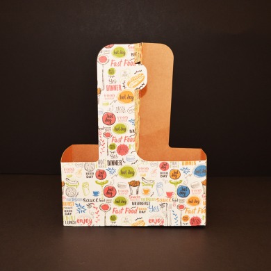 Suport din carton pentru pahare de cafea, rezistent și cu aspect plăcut, perfect pentru transportul în siguranță al cafelei preferate.