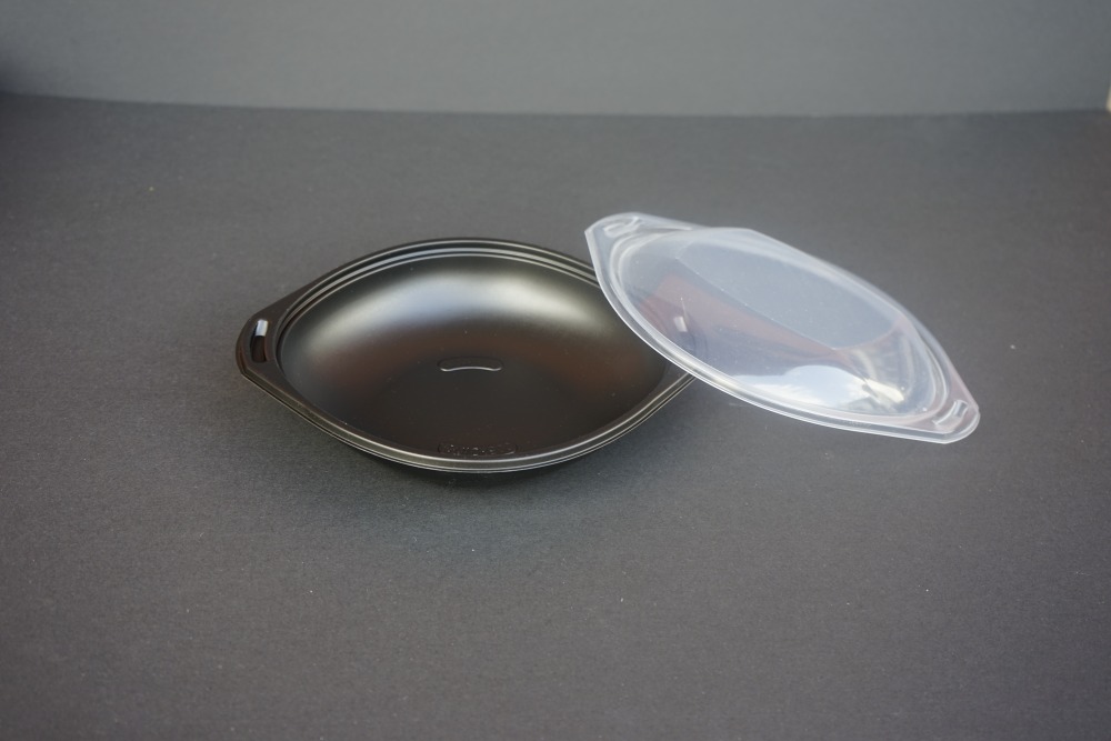 Caserola din PP, neagra, cu capac transparent, din OPS.